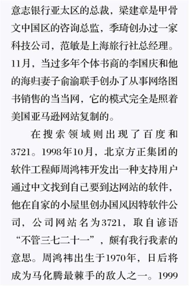 深读之后发明,着实全书真正的焦点在于透过腾讯可以视察到的中国企业逻辑,其中许多基于国情而降生的特殊能力,已往或受诟病或被追捧,而本书作者可以以越发客观的姿态对其举行剖析,这无疑是一种今世创业者和企业家应当学习的姿态和能力。