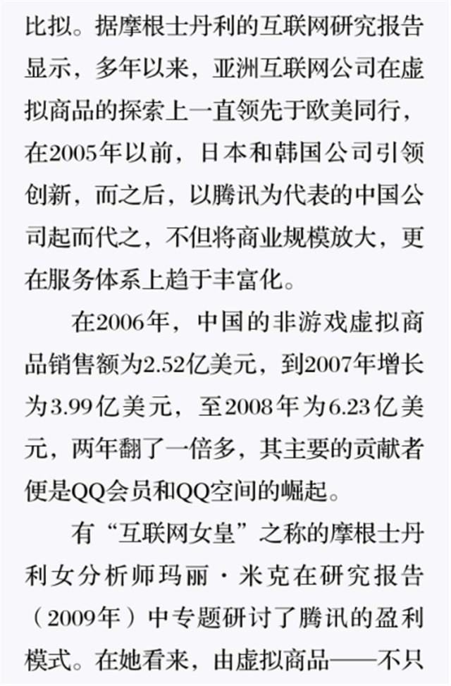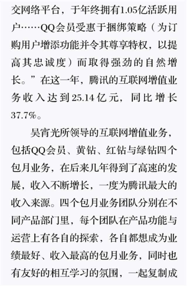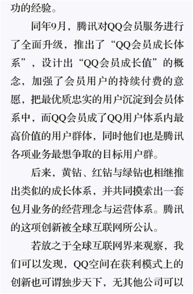 深读之后发明 ,着实全书真正的焦点在于透过腾讯可以视察到的中国企业逻辑 ,其中许多基于国情而降生的特殊能力 ,已往或受诟病或被追捧 ,而本书作者可以以越发客观的姿态对其举行剖析 ,这无疑是一种今世创业者和企业家应当学习的姿态和能力。