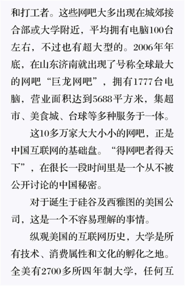 深读之后发明,着实全书真正的焦点在于透过腾讯可以视察到的中国企业逻辑,其中许多基于国情而降生的特殊能力,已往或受诟病或被追捧,而本书作者可以以越发客观的姿态对其举行剖析,这无疑是一种今世创业者和企业家应当学习的姿态和能力。