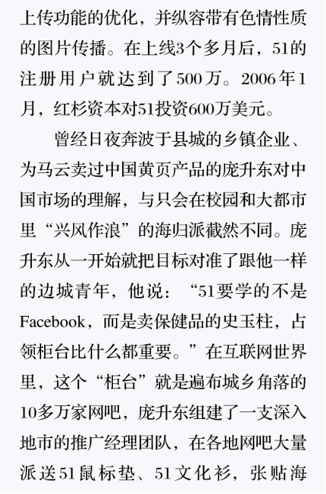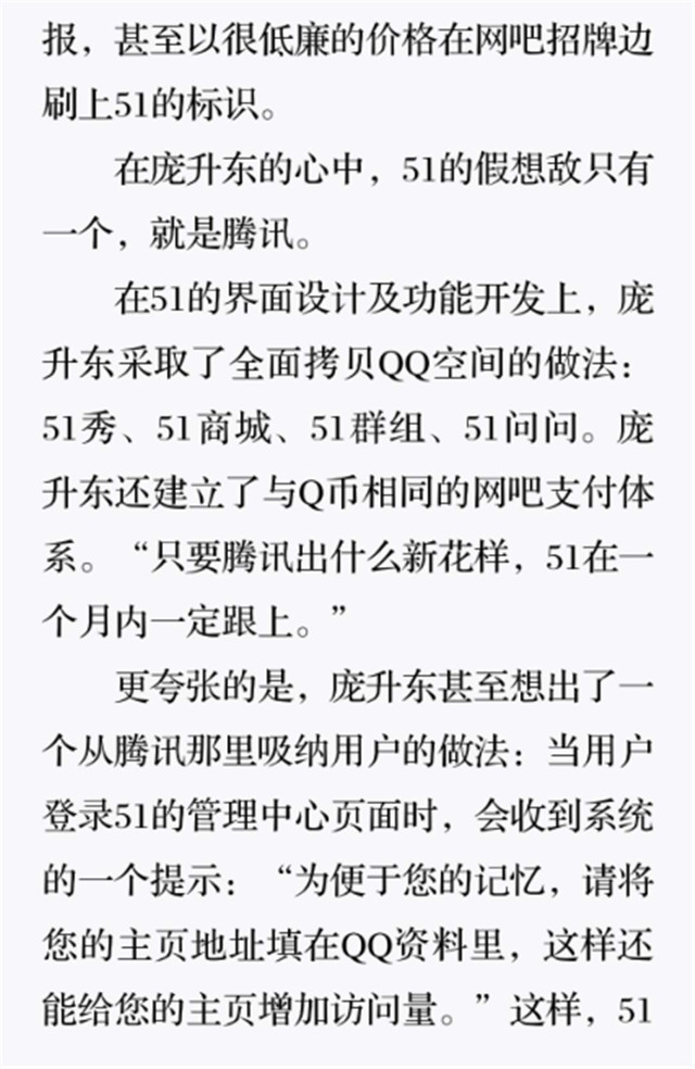 深读之后发明,着实全书真正的焦点在于透过腾讯可以视察到的中国企业逻辑,其中许多基于国情而降生的特殊能力,已往或受诟病或被追捧,而本书作者可以以越发客观的姿态对其举行剖析,这无疑是一种今世创业者和企业家应当学习的姿态和能力。